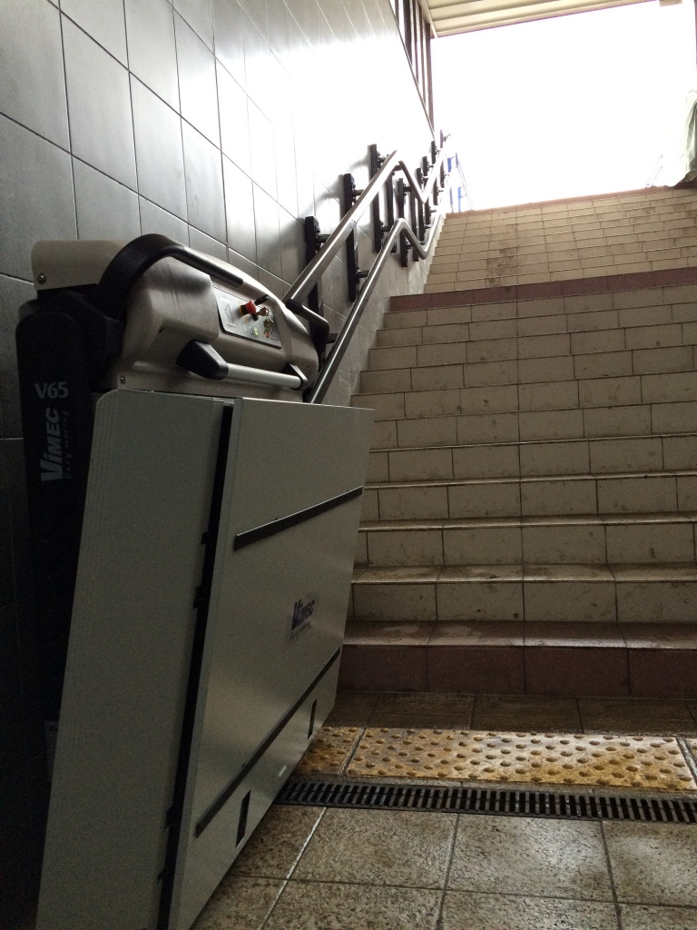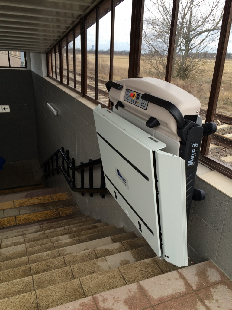 Platforma schodowa V65 to bardzo uniwersalne urządzenie służace do przewozu osób niepełnosprawnych poruszających się na wózkach. Znakomicie spełni swoją funkcję udostępniając niepełnosprawnym podróżnym perony Dworca Osobowice we Wrocławiu.